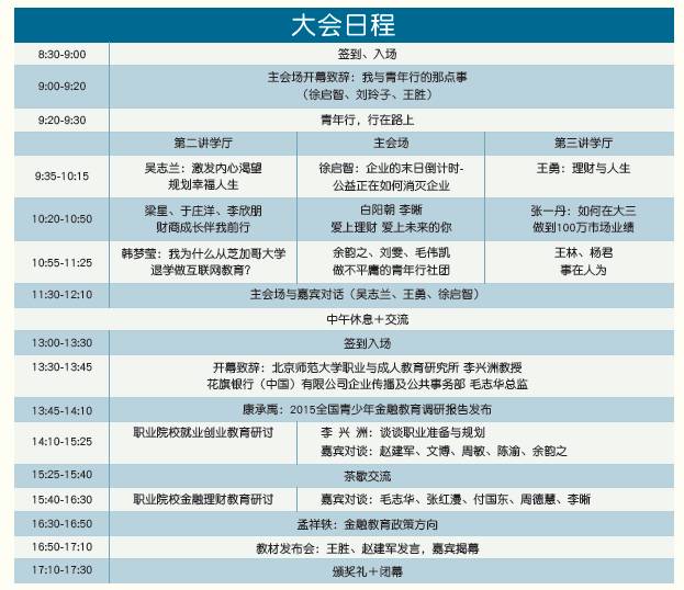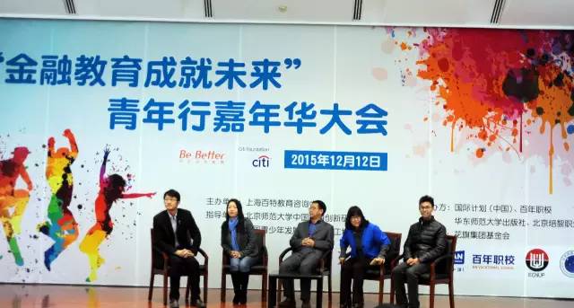 12月12日,由花旗集团基金会支持,百特教育主办,国际计划(中国)、百年职校、华东师范大学出版社、北京培黎职业学院联合协办的“金融教育成就未来”青年行公益嘉年华大会在京召开,会上发布了《2015全国青少年金融教育调研报告》。此次大会还得到了北京师范大学中国教育创新研究院和中国青少年发展基金会新工场协力中心的专业指导。
