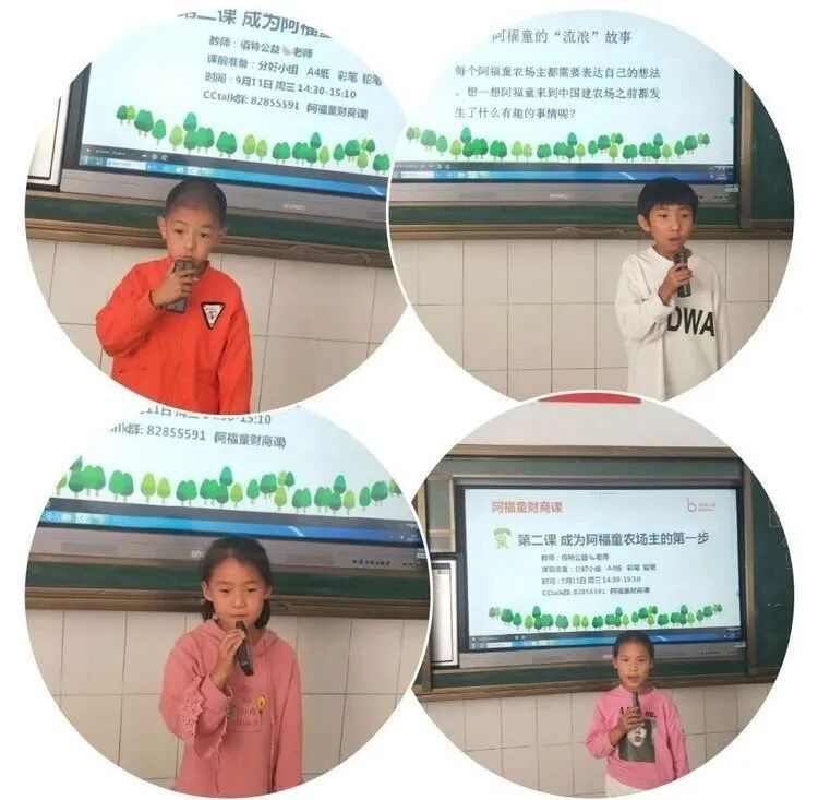 财商教育,这正是孩子们非常需要的,所以赶紧向老师请教如何申请《阿福童财商课》。我非常顺利的联系到佰特公益的彭彭,当我了解到这门课程不但由佰特公益免费提供教材,还有专业的老师每周三负责线上授课,当地的老师做助教就可以完成时,我太惊讶了!这简直太棒了!我可以和孩子们一起体验财商课了!